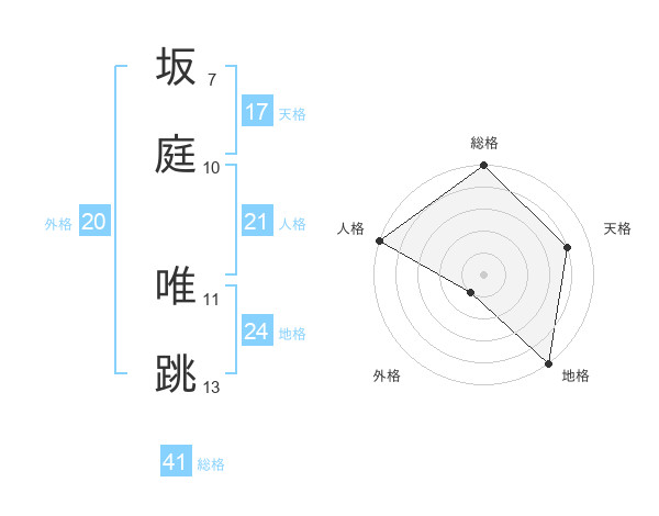 坂庭 唯跳さんを姓名の画数から五運を鑑定