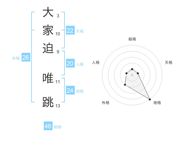 大家迫 唯跳さんを姓名の画数から五運を鑑定