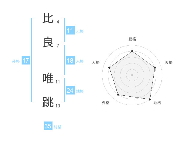 比良 唯跳さんの総格は35画の4点!