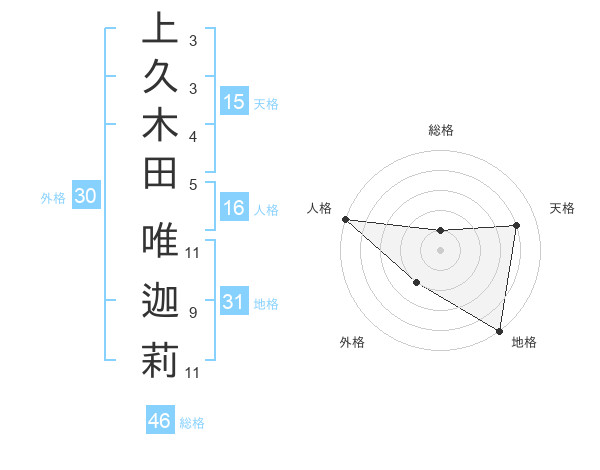 上久木田 唯迦莉さんの天格は15画の4点!