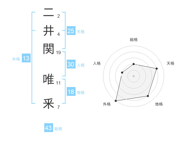 二井関 唯釆さんを姓名の画数から五運を鑑定
