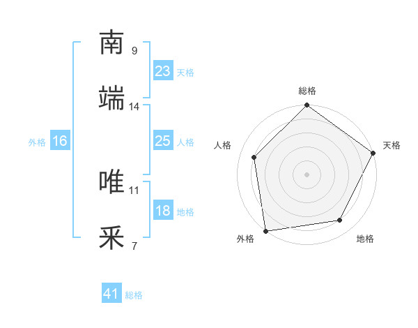 南端 唯釆さんの天格は23画の5点!