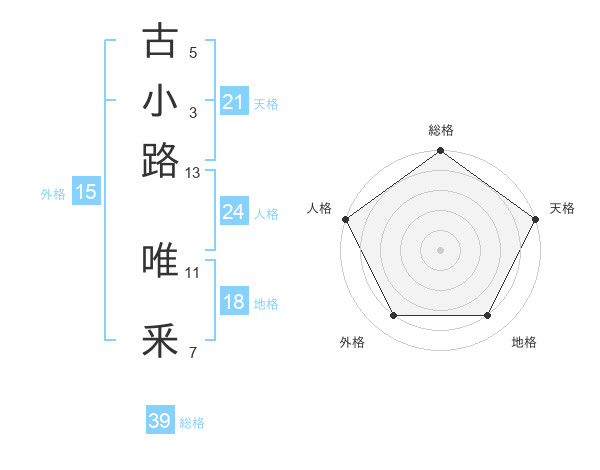 古小路 唯釆さんを姓名の画数から五運を鑑定