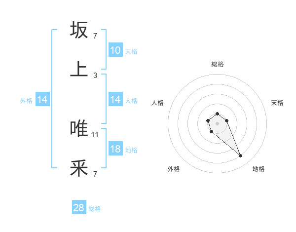 坂上 唯釆さんを姓名の画数から五運を鑑定