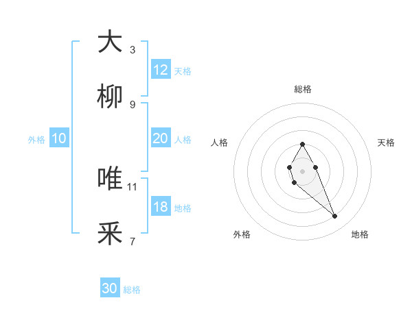 大柳 唯釆さんの天格は12画の1点!