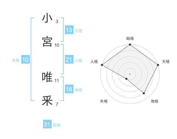 小宮 唯釆さんの総格は31画の5点!