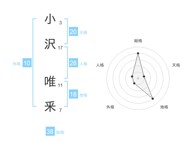 小沢 唯釆さんの総格は38画の4点!
