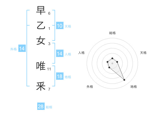 早乙女 唯釆さんを姓名の画数から五運を鑑定