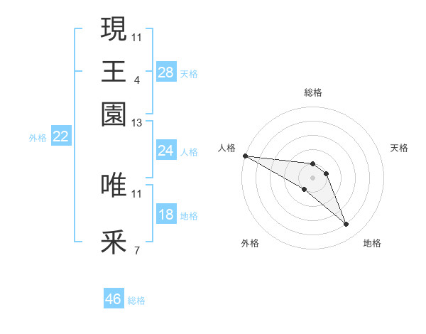 現王園 唯釆さんの天格は28画の1点!