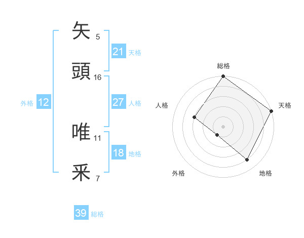 矢頭 唯釆さんの天格は21画の5点!