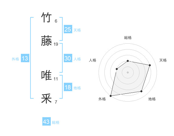 竹藤 唯釆さんを姓名の画数から五運を鑑定