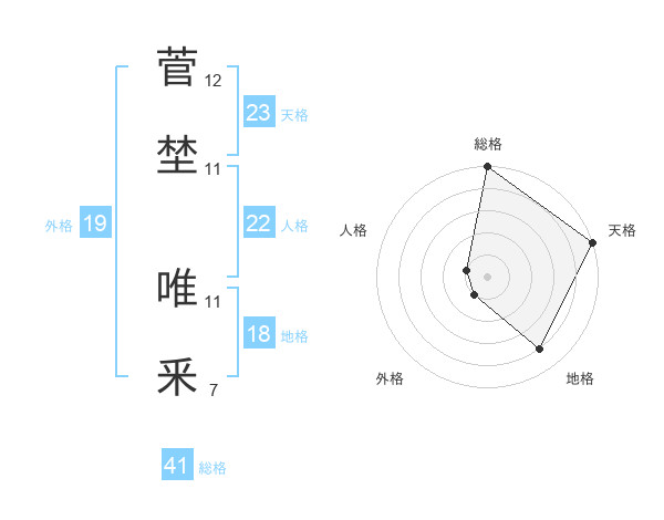 菅埜 唯釆さんの総格は41画の5点!