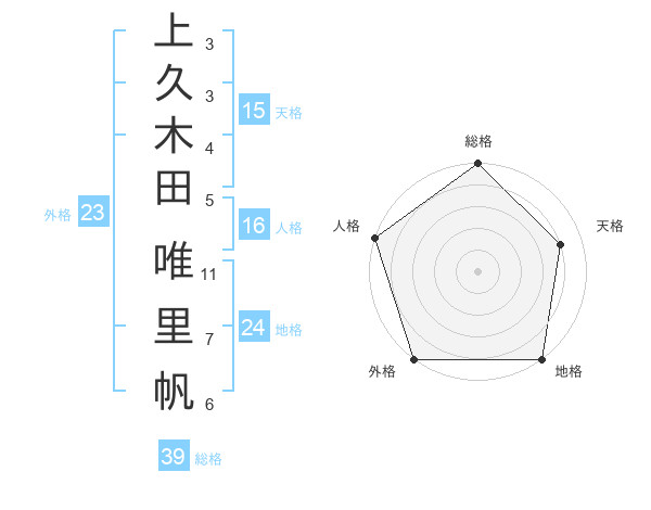 上久木田 唯里帆さんの総格は39画の5点