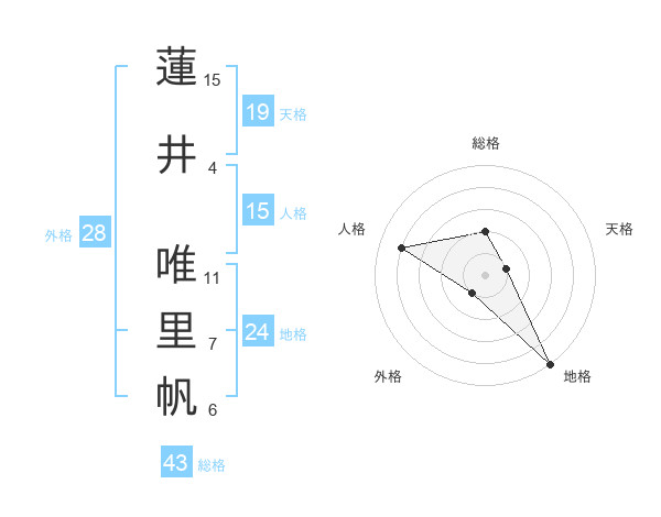 蓮井 唯里帆さんの人格は15画の4点!