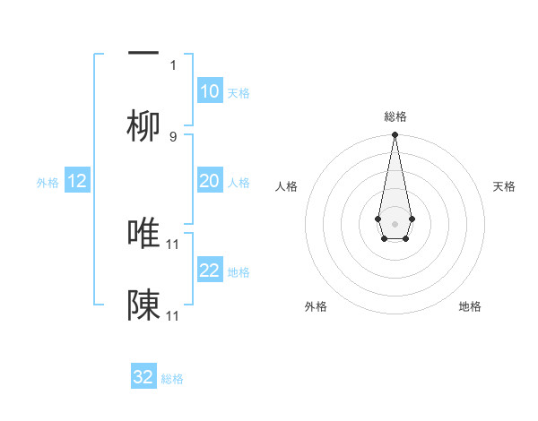 一柳 唯陳さんの総格は32画の5点!