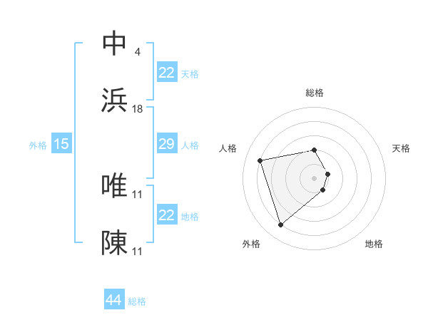 中浜 唯陳さんの天格は22画の1点!