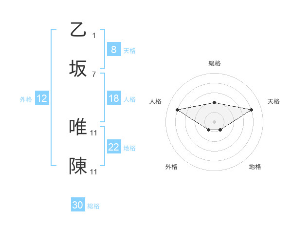 乙坂 唯陳さんを姓名の画数から五運を鑑定
