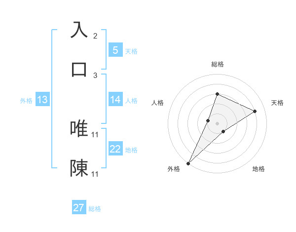 入口 唯陳さんを姓名の画数から五運を鑑定