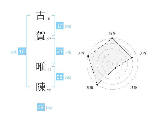 古賀 唯陳さんを姓名の画数から五運を鑑定
