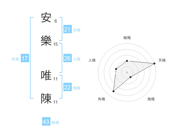 安樂 唯陳さんの外格は17画の4点!