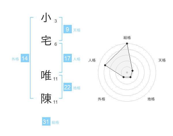 小宅 唯陳さんを姓名の画数から五運を鑑定