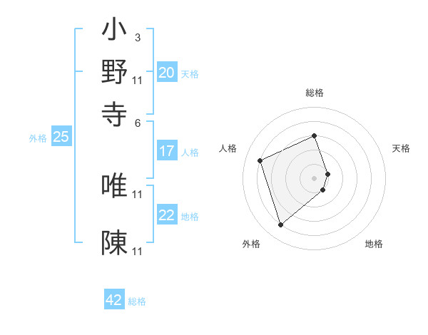小野寺 唯陳さんを姓名の画数から五運を鑑定