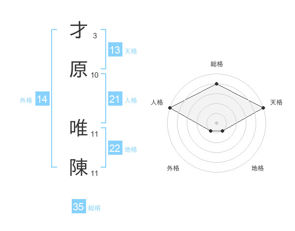 才原 唯陳さんの天格は13画の5点!