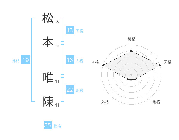 松本 唯陳さんを姓名の画数から五運を鑑定