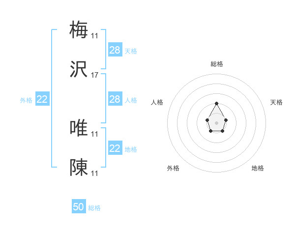 梅沢 唯陳さんの総格は50画の2点!
