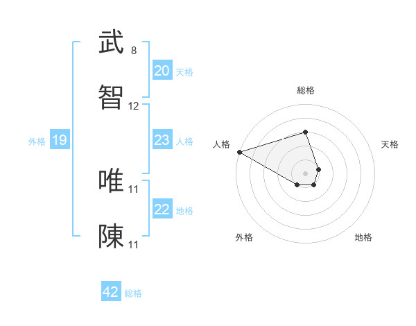 武智 唯陳さんの地格は22画の1点!