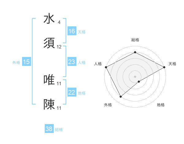水須 唯陳さんの総格は38画の4点!