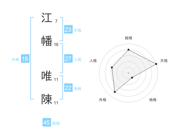 江幡 唯陳さんの総格は45画の4点!