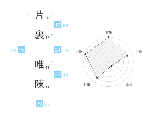 片裏 唯陳さんの天格は17画の4点!