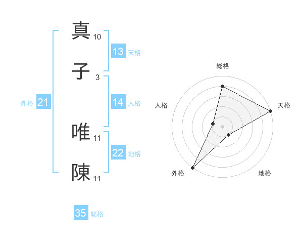 真子 唯陳さんの外格は21画の5点!