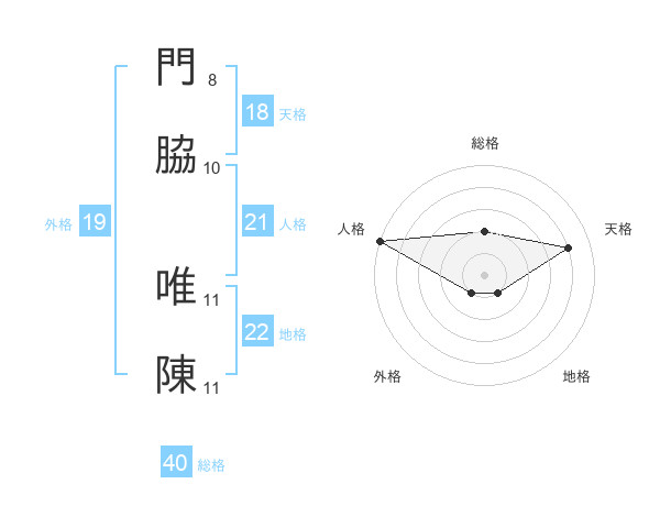 門脇 唯陳さんを姓名の画数から五運を鑑定
