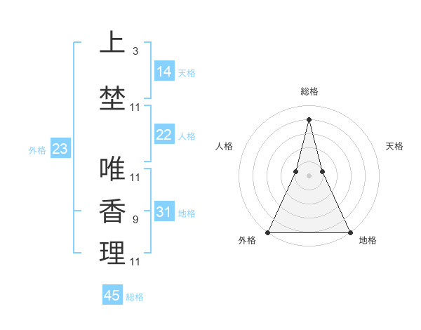 上埜 唯香理さんの外格は23画の5点!