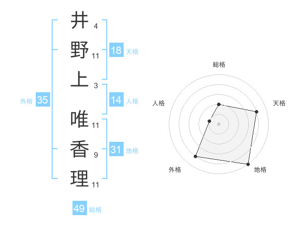 井野上 唯香理さんを姓名の画数から五運を鑑定