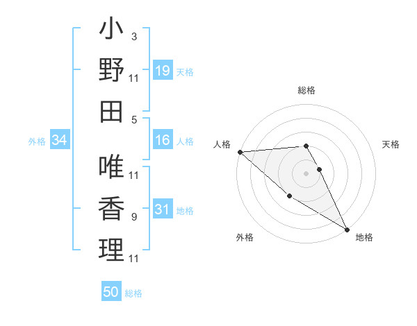 小野田 唯香理さんを姓名の画数から五運を鑑定