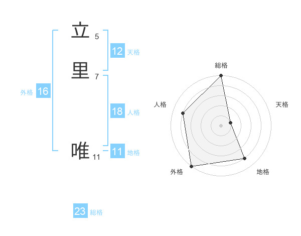 立里 唯さんの総格は23画の5点!