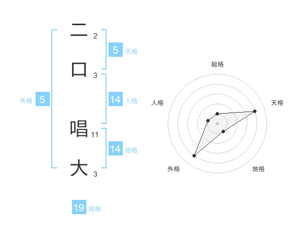 二口 唱大さんの外格は5画の4点!