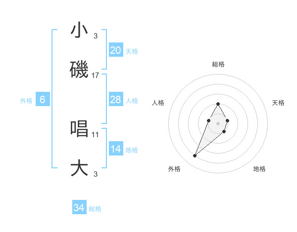 小磯 唱大さんを姓名の画数から五運を鑑定