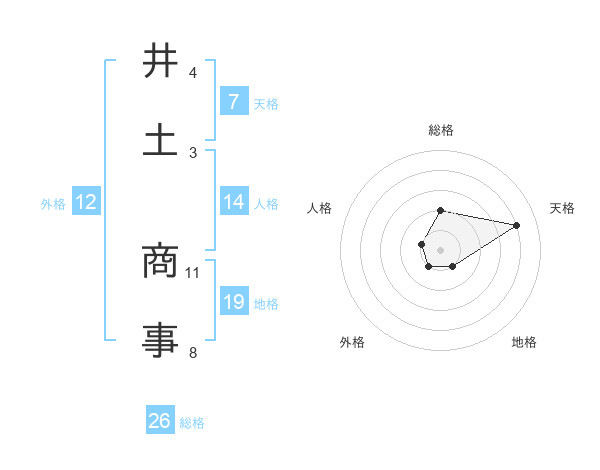 井土 商事さんの総格は26画の2点!