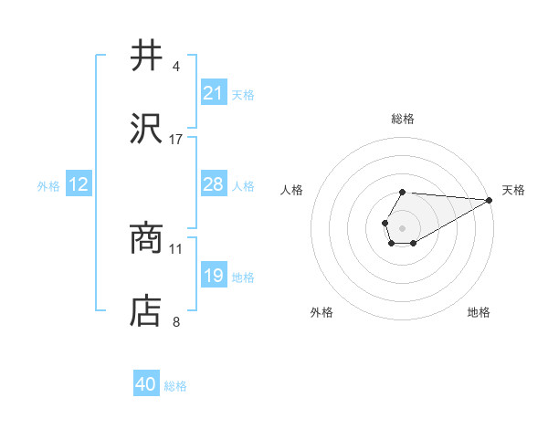 井沢 商店さんの天格は21画の5点!
