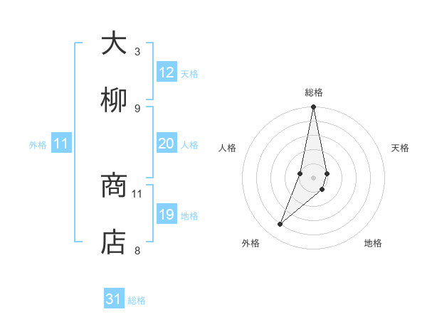 大柳 商店さんの総格は31画の5点!