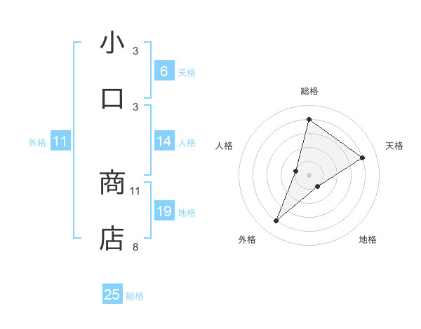 小口 商店さんの総格は25画の4点!