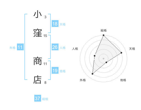 小窪 商店さんの総格は37画の5点!