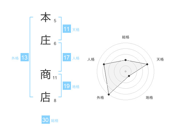 本庄 商店さんの総格は30画の2点!