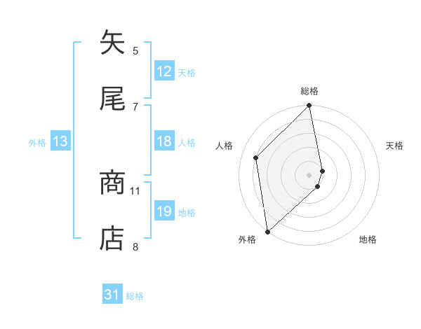 矢尾 商店さんの総格は31画の5点!