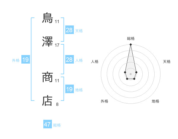 鳥澤 商店さんを姓名の画数から五運を鑑定