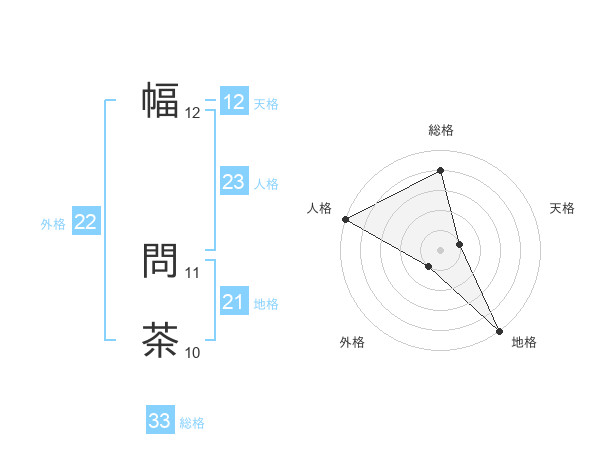 幅 問茶さんの総格は33画の4点!